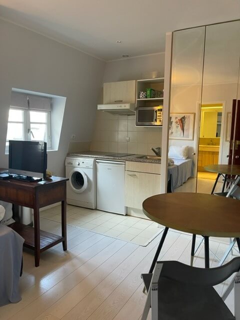 Near the famous Avenue des Champs Elysées, we suggest a redone studio with modern furniture. It is made up of a main room with a sofa bed, a fitted and equipped kitchen (washing machine, dish washer, oven, hot plates ans extractor) and a bathroom with toilets.