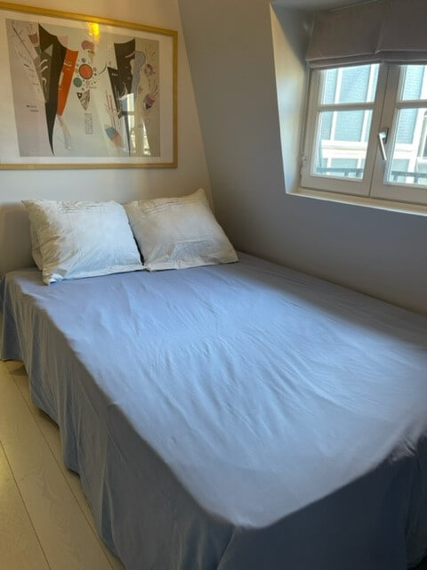 This studio gets several storages and a fire place. It is quiet and bright and has a view on the courtyard.