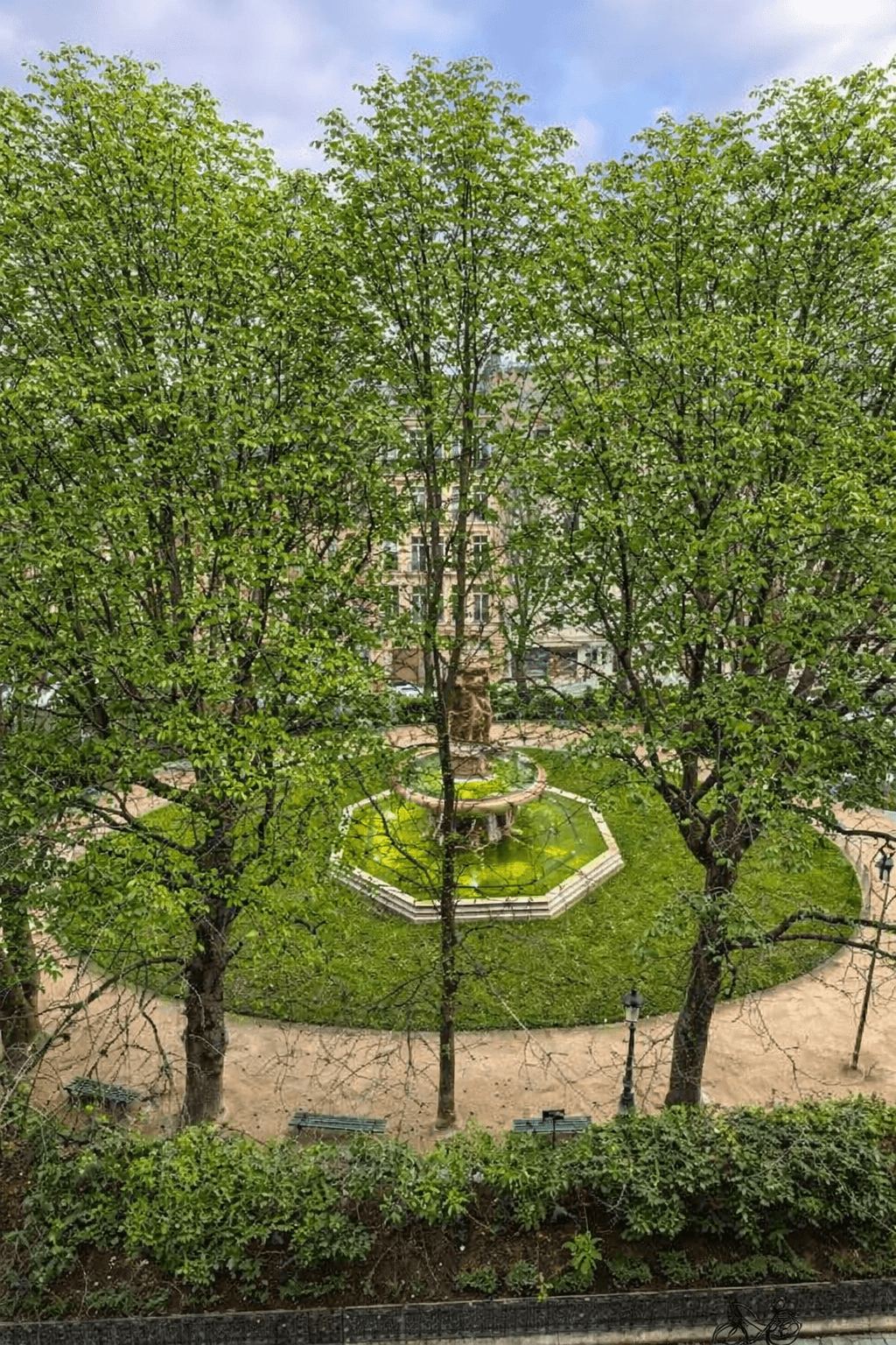 Le studio bénéficie d’une vue dégagée sur un square Louvois, sans vis-à-vis.