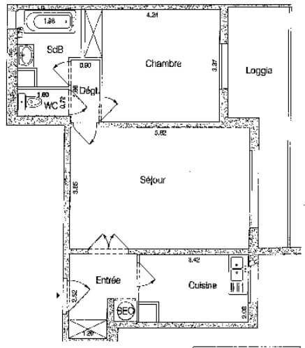 Il se compose d'une entrée, d'un séjour, d'une chambre et rangements, d'une cuisine équipée séparée (lave-vaisselle, lave-linge séchant, four, réfrigérateur/congélateur, plaques vitrocéramiques, micro-ondes), d'une salle de bains, et de WC séparés.